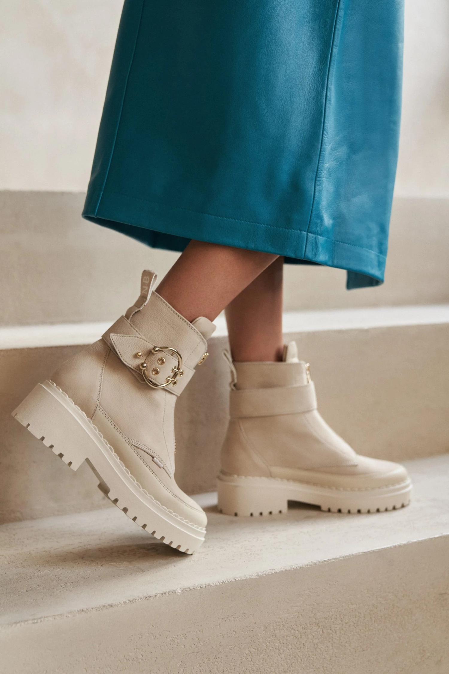 Der FAE RAY von NUBIKK ist ein mittelhoher Boot mit Reißverschluss im All-Beige Design. Durch die Steppnähte wirkt der Boot sowohl feminin als auch super edgy. Die derbe Profilsohle geben dem femininen Look die gewisse Lässigkeit. Das gewisse Extra verleiht ein breiter Lederriemen auf knöchelhöhe, welcher sich mit einer goldenen Schnalle schließen lässt. Der vielseitige Look, lässt den FAE RAY wunderbar zu allen Looks kombinieren. Wir würden den Book zu einem hellen Strickkleid kombinieren.